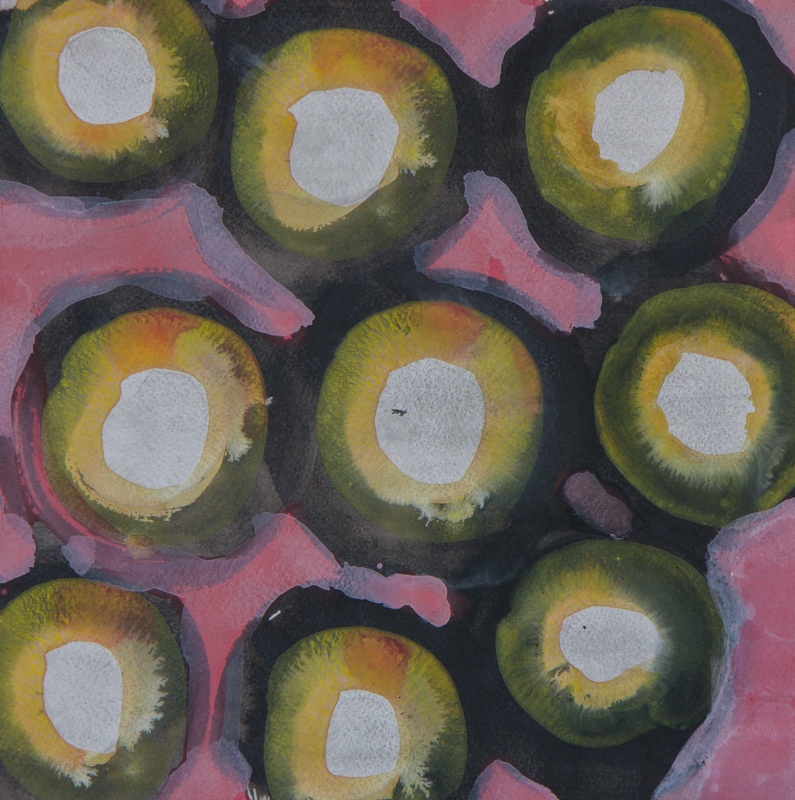 Techniek: acrylverf op aquarelpapier. Formaat: 30 x 30 cm.